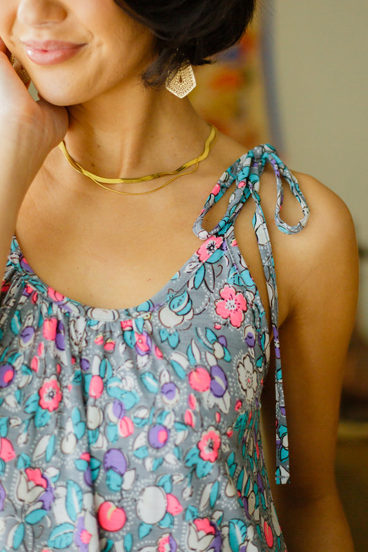Floral Essence Tie Strap Mini Dress